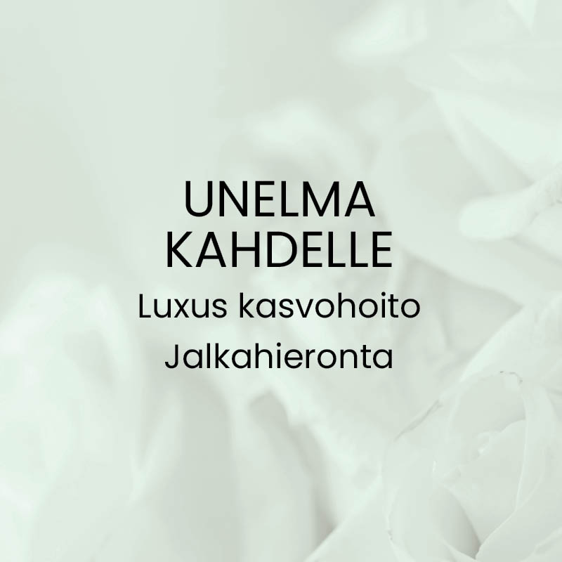UNELMA -hemmottelupakettiin sisältyy luxus-kasvohoito ja jalkahieronta. Hoitopaketin kesto on noin 1 h 45 min.
